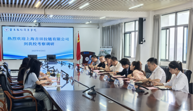 沪滇携手促合作校企对接育人才——上海吉田拉链有限公司到访我校洽谈合作9月9日上午,上海吉田拉链有限公司代表团到访我校,校企双方在701会议室举行合作洽谈会。我校副校长柏松、纺织...